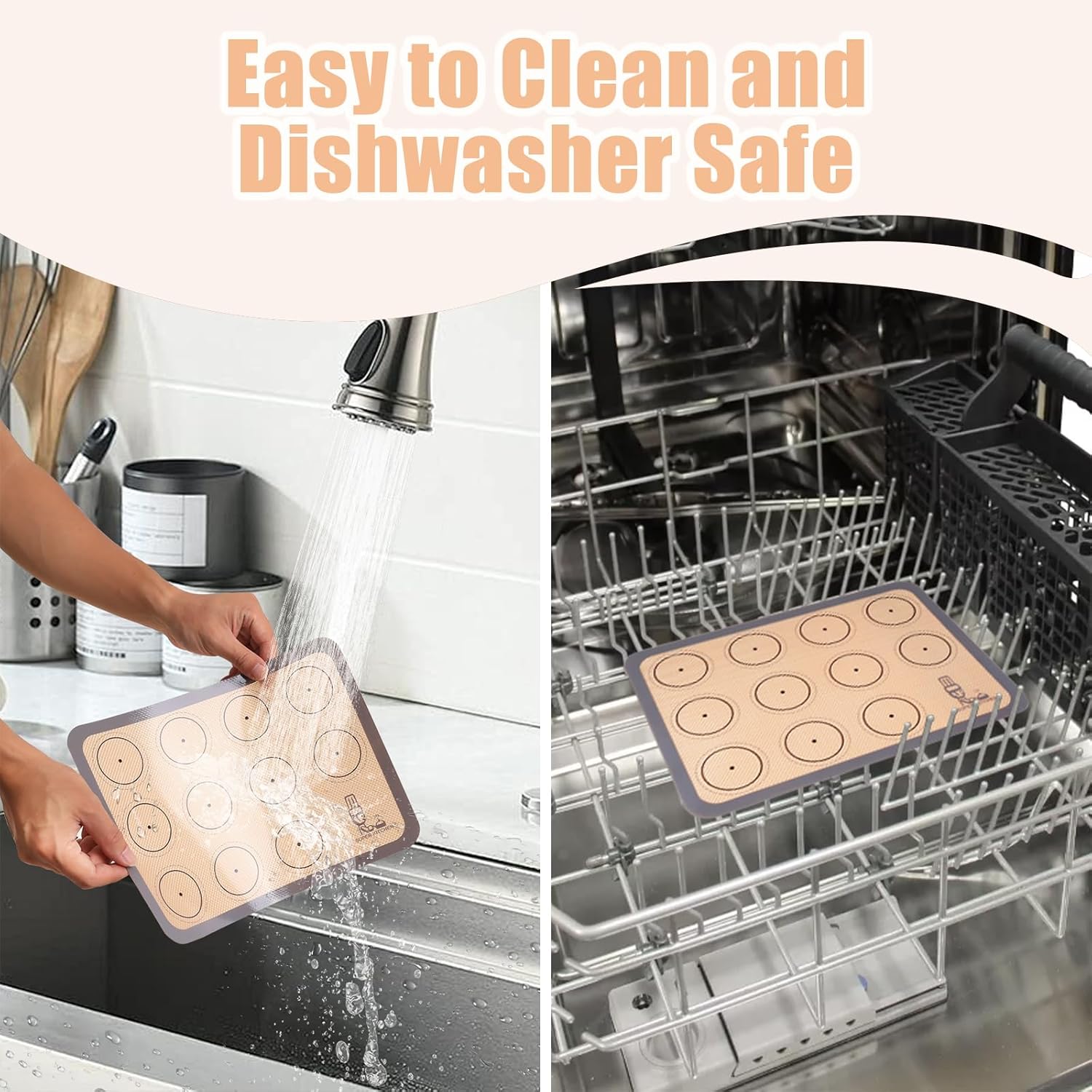Die Matten sind geeignet für den Backofen und die Mikrowelle. Sie dürfen auch in die Spülmaschine und in den Gefrierschrank, denn sie können bei Temperaturen von -40 bis 230 Grad verwendet werden. Sie sind ideal zum Backen von Süßigkeiten, Macarons, Gebäck, Plätzchen, Brot und Brötchen und vielem mehr!