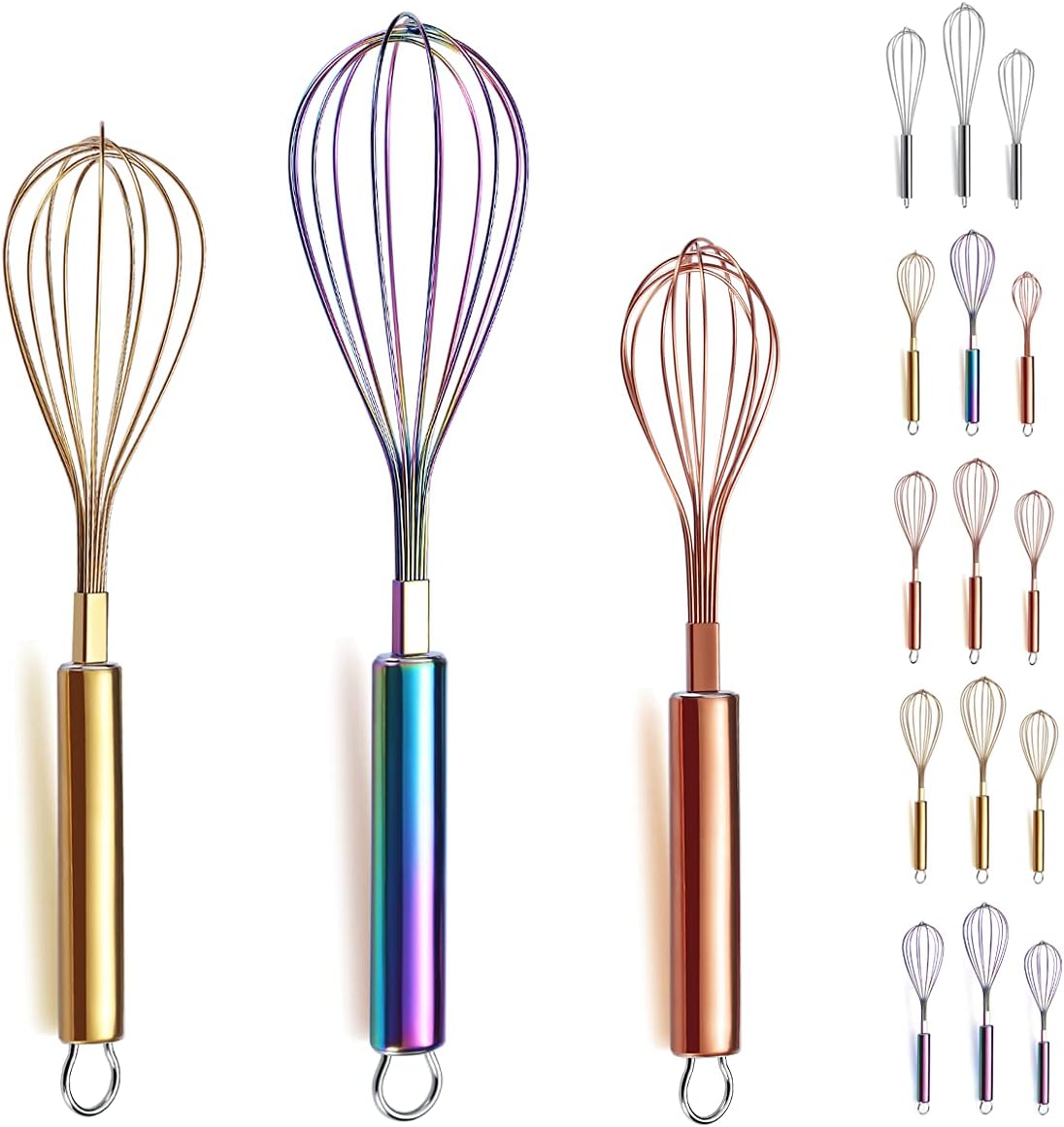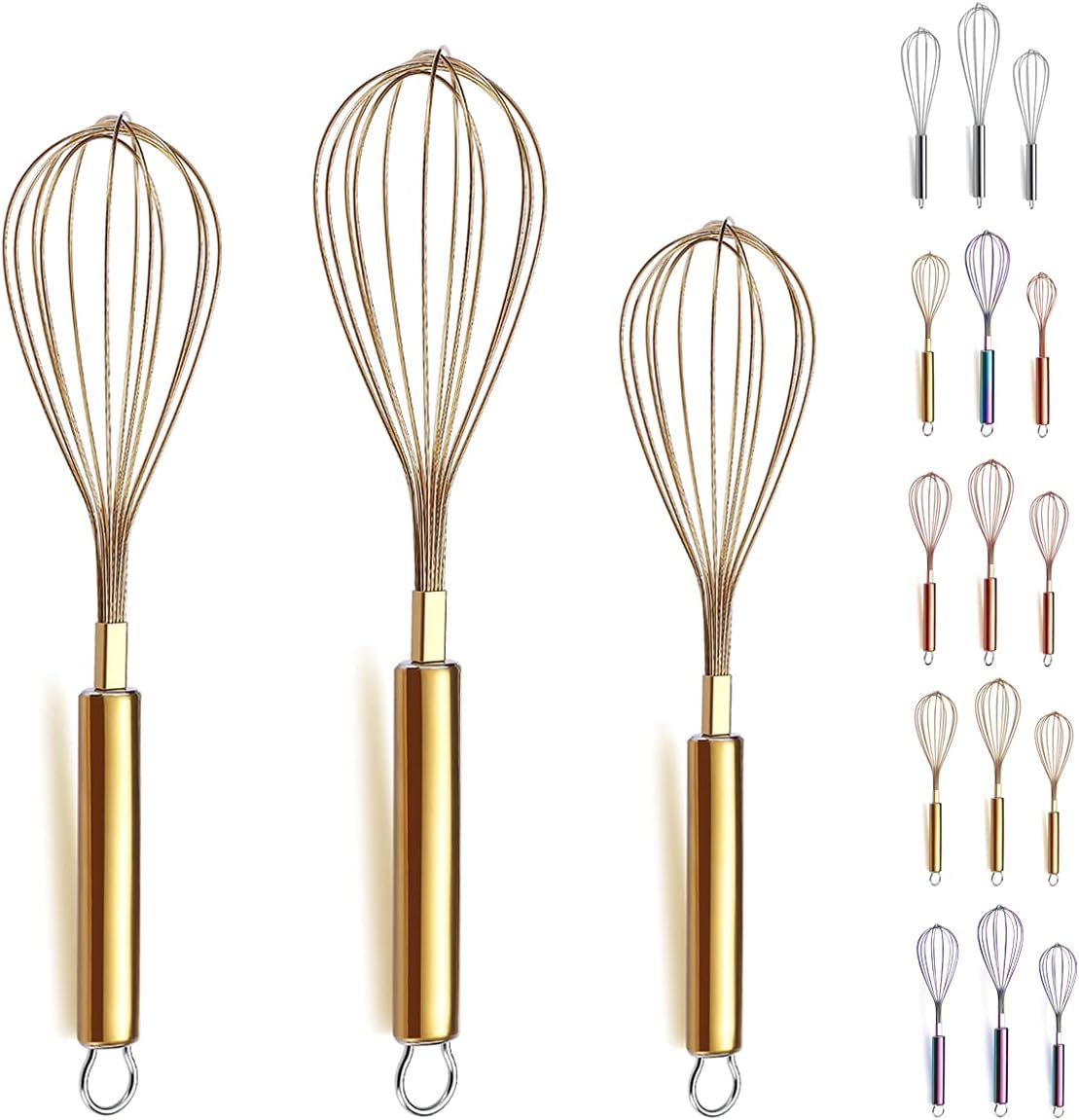 Das Schneebesen-Set der Firma Berglander besteht aus hochwertigem Edelstahl und ist hochglanzpoliert. Es ist ergonomisch für eine hervorragende Balance in der Hand designt. Diese Schneebesen helfen Dir bei allen Küchenaufgaben. Sie sind jahrelang haltbar. Die Schneebesen werden manuell poliert, um die hochwertige, glänzende Oberfläche zu gewährleisten. Sie sind mit Titan-Roségold überzogen, was wunderschön und luxuriös aussieht.