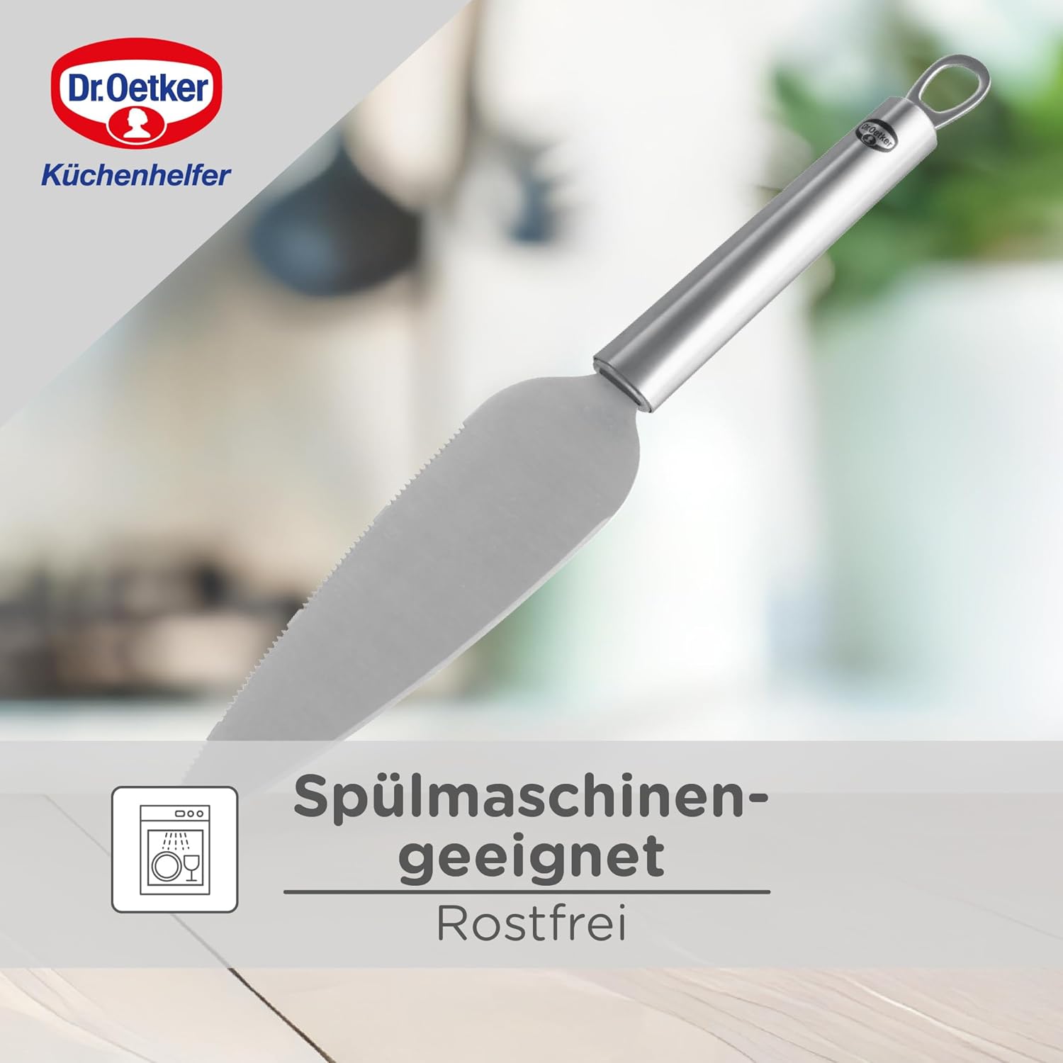 Das Profi-Tortenmesser ist aus rostfreiem Edelstahl gefertigt und wird einfach in der Spülmaschine gereinigt.